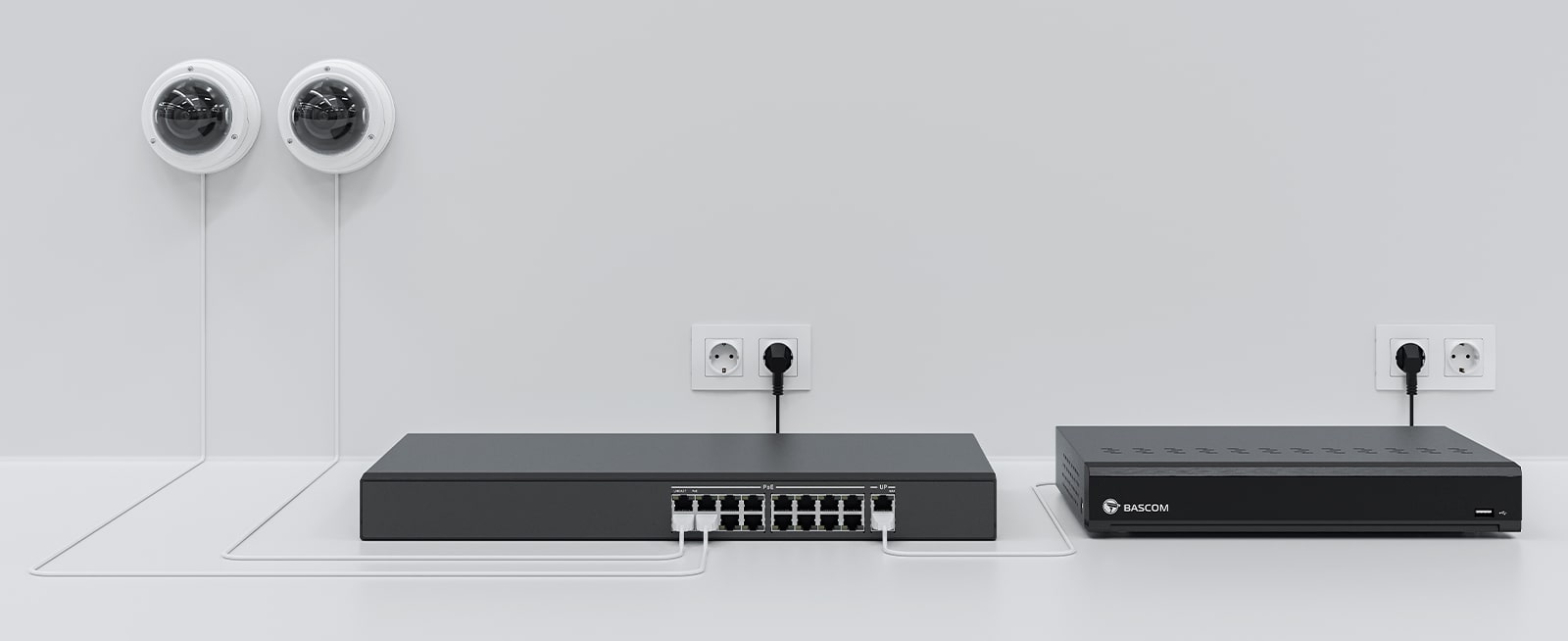 Dans un système de vidéosurveillance câblé, les caméras sont généralement reliées directement à l’enregistreur. Pour les installations plus vastes, l’utilisation d’un commutateur PoE (PoE switch) peut toutefois s’avérer plus efficace – notamment lorsque plusieurs caméras sont éloignées de l’enregistreur. Il suffit alors de connecter toutes ces caméras au switch, puis de tirer un seul câble vers l’enregistreur.