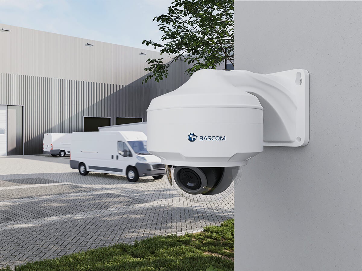 Une caméra dome peut être montée au plafond ou à plat contre le mur et peut être bien orientée dans les deux cas. Cependant, il est parfois préférable que la caméra soit légèrement éloignée du mur, par exemple pour regarder le long d'une gouttière ou d'un autre obstacle. Dans ce cas, un support mural offre une solution élégante.