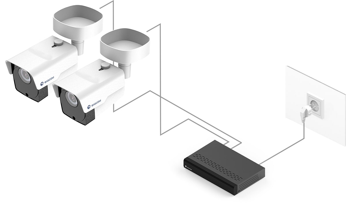 95 % de nos clients n’avaient jamais installé de système de vidéosurveillance auparavant, mais ont pu installer ce système Bascom eux-mêmes. Fixez les caméras au mur ou au plafond, branchez-les et le système fonctionne.