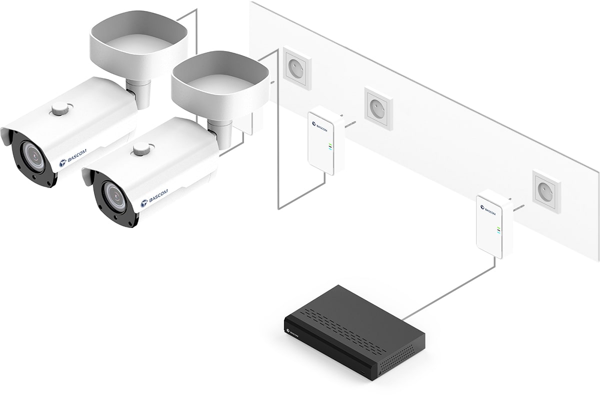 Ce système de vidéosurveillance est équipé de Bascom® POWER, notre technologie révolutionnaire qui transmet les images via le réseau électrique. Il vous suffit de brancher les caméras sur une prise de courant : elles se connectent automatiquement à l’enregistreur en utilisant vos câbles électriques existants. Vous bénéficiez ainsi de la fiabilité d’une connexion filaire, sans avoir à tirer de câbles vous-même.